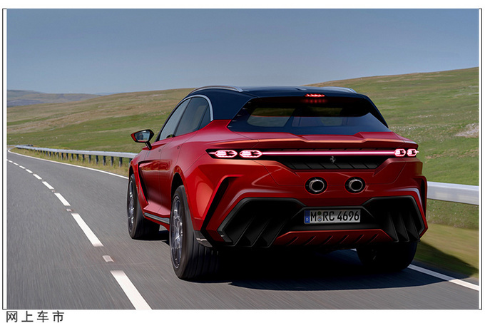 外观方面,从外媒发布的新车渲染图来看,外观造型与我们之前获取到的新车路试谍照图轮廓还是有一定差距的,渲染图中的新车外观设计十分激进,前脸配备超大幅熏黑进气格栅,几乎占据了整个前脸,两侧LED大灯造型十分尖锐,搭配下方日间行车灯,使新车前脸更具攻击性。车身侧面来看,新车底盘偏低,车身线条流畅,车顶线相比竞争对手Urus更低。车尾部分配备了造型独特的贯穿式尾灯,排气采用中置布局,下方扩散器尺寸十分夸张。