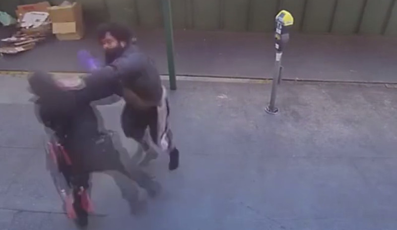 2021年5月,美国旧金山的一名流浪汉,光天化日之下袭击亚裔女警察。