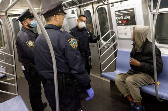 2020年4月,前纽约州长安德鲁·科莫公开展示了《纽约每日新闻》的头版画面,上头显示无家可归者们躺在空荡荡的列车座位上。
