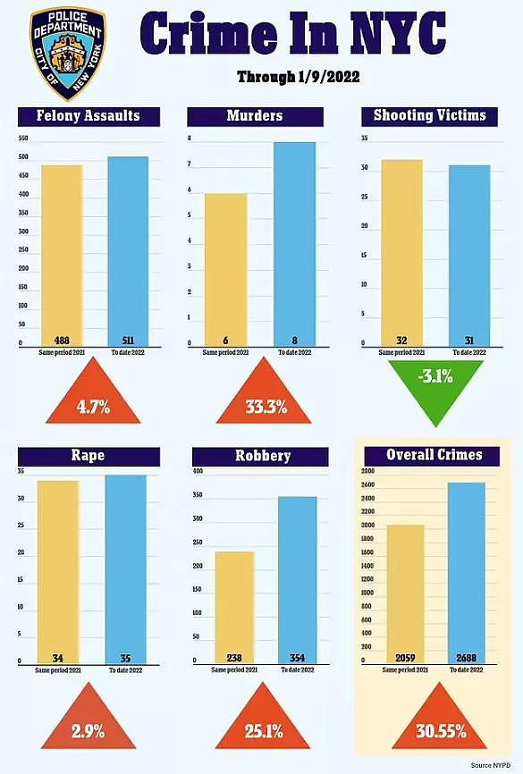 有数据显示,时报广场地铁站所在的区域,从2021年1月1日至1月9日,发生了17起重罪袭击事件,与去年相比,增加了325%。