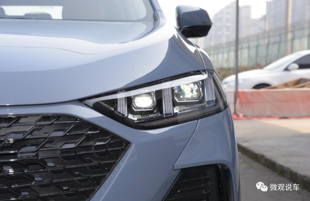 魏派拿铁DHT的造型还是延续了VV7那种风格,车头辨识度高,大嘴加肌肉感十足,线条简洁有力量,显得更大气。黑色中网采用多边形网状结构,大尺寸扁平状,下部格栅横向延展,整个车头显得更扁平化。