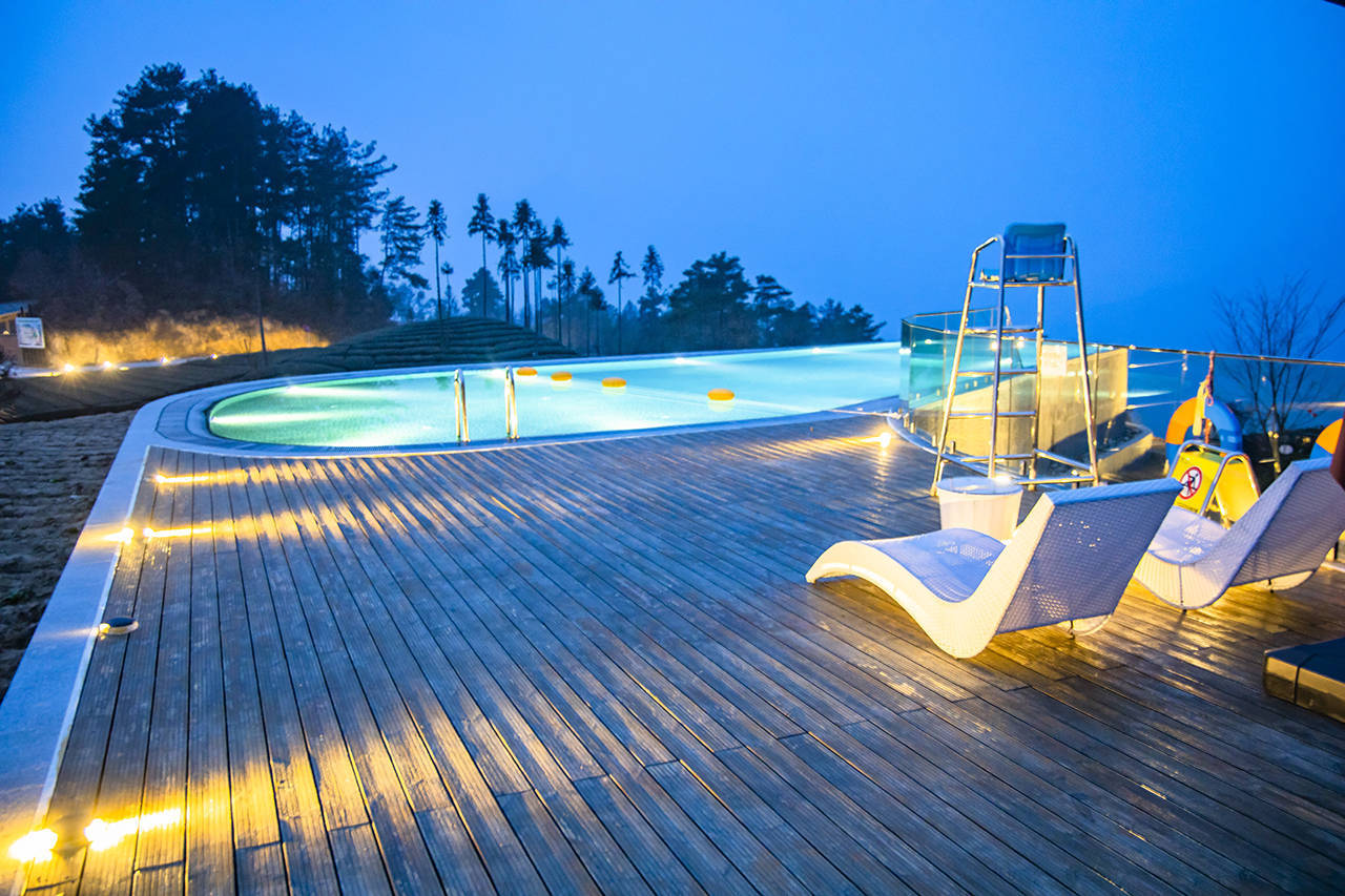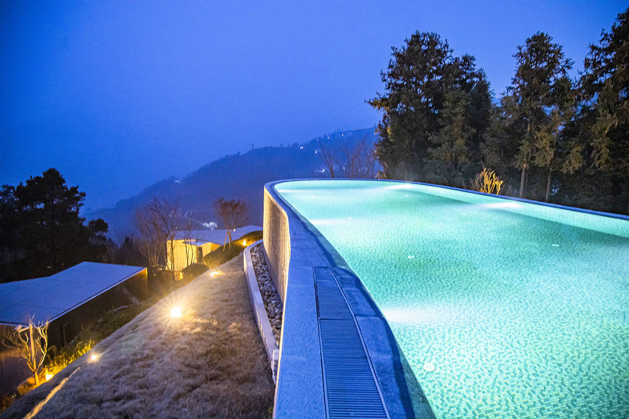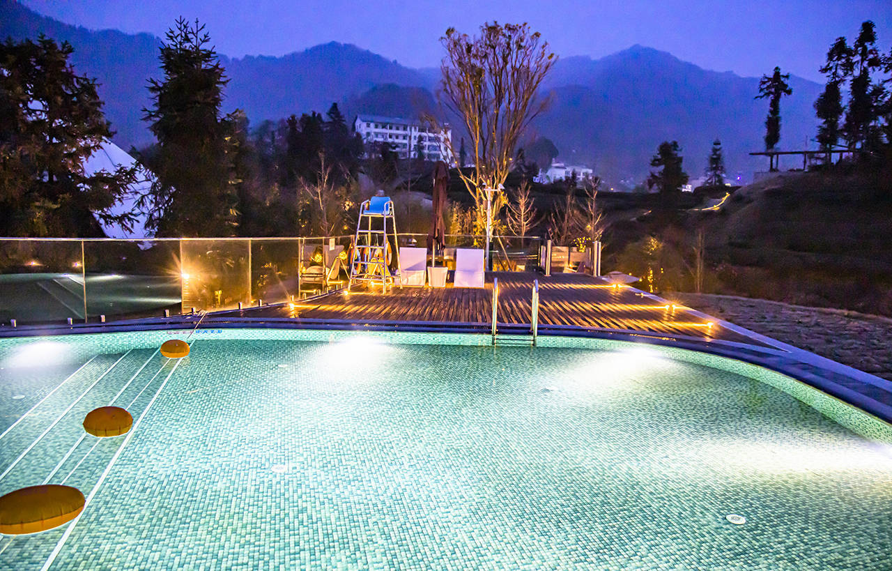 山顶处还有一非常值得打卡的网红泳池,这里也是观景的好地方,在池中嬉戏玩耍的时候,还能欣赏到高山云海、日落晚霞与漫山茶林的悠然自得。
