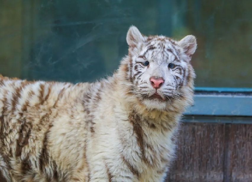 首先,给大家介绍来自西霞口神雕山野生动物世界的龙凤胎大虎宝——两只白虎宝宝,他们出生于2021年年初,刚刚满一周岁,现在已经是体重近百的大宝宝了。(白虎是孟加拉虎的变种,粉红的鼻子,雪白的皮毛,这对龙凤胎虎宝身上是偏巧克力色的条纹。)