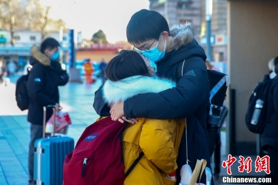 1月17日,北京站入站检票口,一对情侣在亲吻分别。当日,2022年春运大幕正式开启。今年春运从1月17日至2月25日,共40天。 中新社记者 易海菲 摄