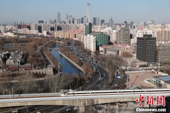 1月17日,列车在北京市区穿行。当日,2022年春运拉开序幕。 中新社记者 蒋启明 摄
