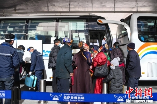 1月17日,西藏拉萨贡嘎国际机场T3航站楼,旅客准备乘坐机场大巴。当日,2022年春运启动。2022年春运从1月17日开始,至2月25日结束,共40天。 中新社记者 贡嘎来松 摄