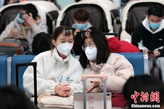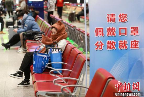 1月17日,陕西西安,两位学生在西安北站等候乘车。当日,2022年春运启幕,西安站(下辖西安火车站、西安北站)迎来学生返乡客流高峰,共开行高铁104对、普速55.5对;恢复及新增开行高铁42列、普速10列。西安站当日预计发送旅客8.5万人次。 中新社记者 张远 摄