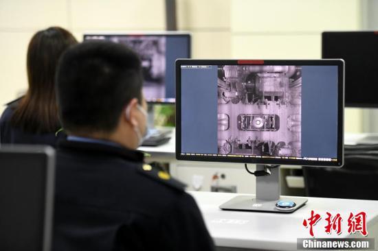 1月17日,2022年春运首日,中国铁路南昌局集团有限公司福州动车段通过严防疫+“黑科技”,让动车组健康上线,确保春运安全。图为工作人员通过TEDS(动车组车辆故障动态图像检测系统)对动车进行安全检查。王东明 摄