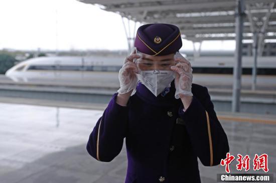 1月17日,持续40天的2022年春运正式启动。在铁路上海虹桥站,中国铁路上海局集团有限公司上海客运段高铁三车队“”00后”列车员卞之琰正在进行出车前准备。对于普通人来说,春节就是相聚的时候,今年,很多“00后”铁路人迎来了职业生涯的首个春运。同时,她们以实际行动践行“人民铁路为人民”的宗旨,更表明着她们打赢疫情防控阻击战的决心。图为“00后”列车员卞之琰正在站台上整理个人防护装备。殷立勤 摄