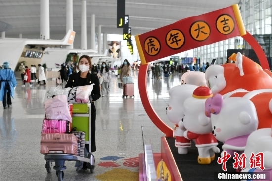 1月17日,广东省广州市,旅客进入广州白云机场出发大厅。当日,2022年春运大幕正式开启,将持续至2月25日,共40天。 中新社记者 陈楚红 摄
