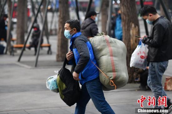 1月17日,旅客在成都火车北站出行。当日,2022年春运拉开序幕,2月25日结束,共40天。 中新社记者 张浪 摄