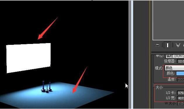 第二步:将创建的灯光调整好位置,再次渲染可以看到,场景中的物体已经被灯光照亮了!当然灯光形状包括平面和球形,可以根据自己需要改变。