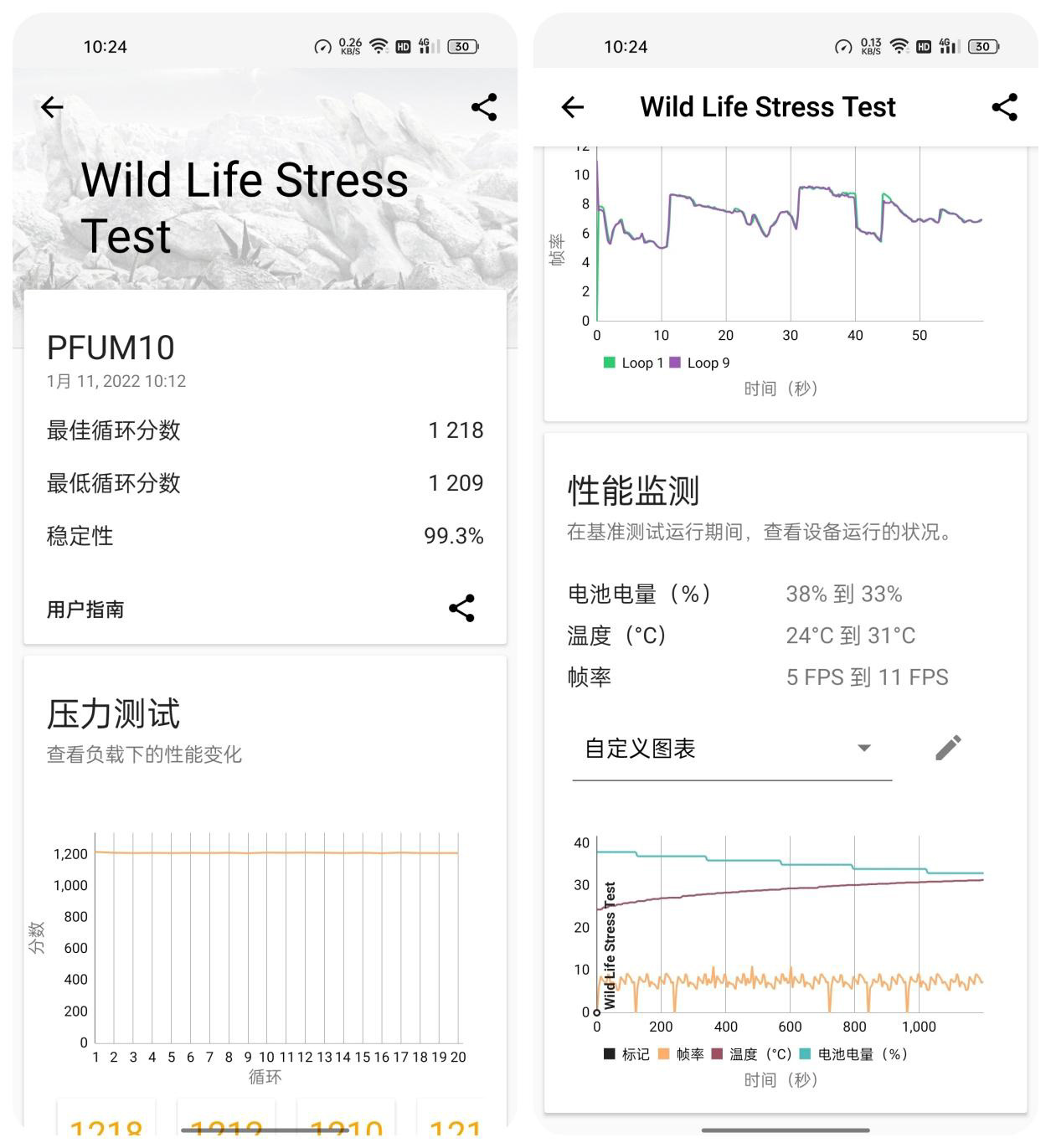 IT之家还测试了 3DMark 的 Wild Life Stress Test 项目,连续进行 20 轮的高强度测试以展现手机的散热和性能释放稳定性,在这项测试中,OPPO A96 获得了 99.3% 的稳定性。显然,骁龙 695 出色的低功耗表现提到了一定的作用。