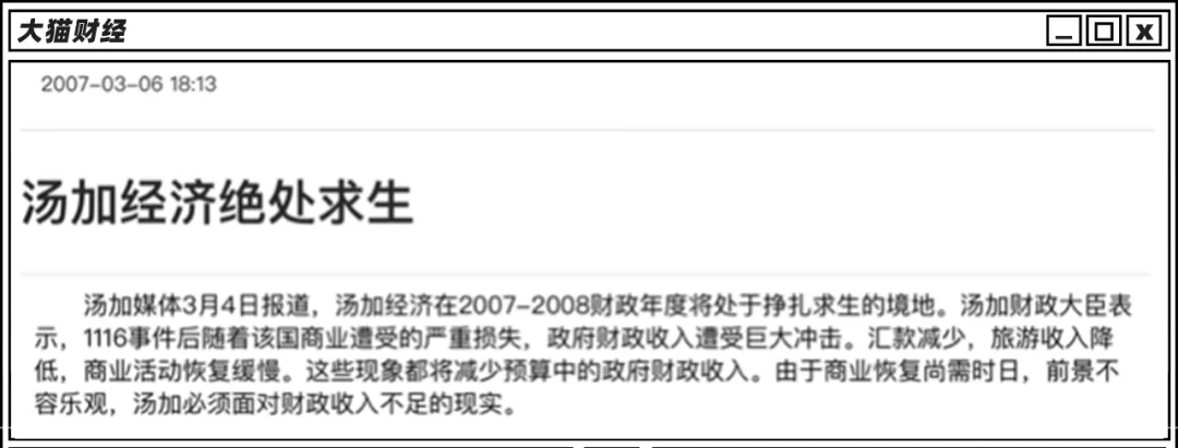 当时中国还是很大气的,直接支援了一些基建项目,汤加的困难缓解了不少,结果2008-2009年这些项目一结束,当地建筑业立刻掉入谷底,经济形势又非常严峻,过了五六年也没缓过来。