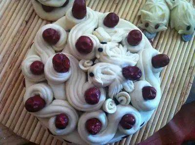 其实,除了祭灶,整个过年期间,南阳人会准备不同的面点。有供祖敬神的有大馍、枣馍、年糕,还有圆形面食,上端刻十二凹缺,叫“蒸月”,圆仓形面食,叫“蒸仓”,做十二生肖面食叫“蒸属”,又蒸鱼、猪、狗、鸡、元宝等形状的面食分置家中各处,供节后食用。