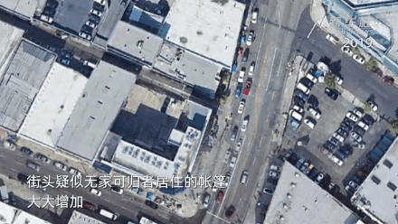 ▲ 卫星观测显示,从2019年至2021年,洛杉矶市街头无家可归者的帐篷数量明显增加。