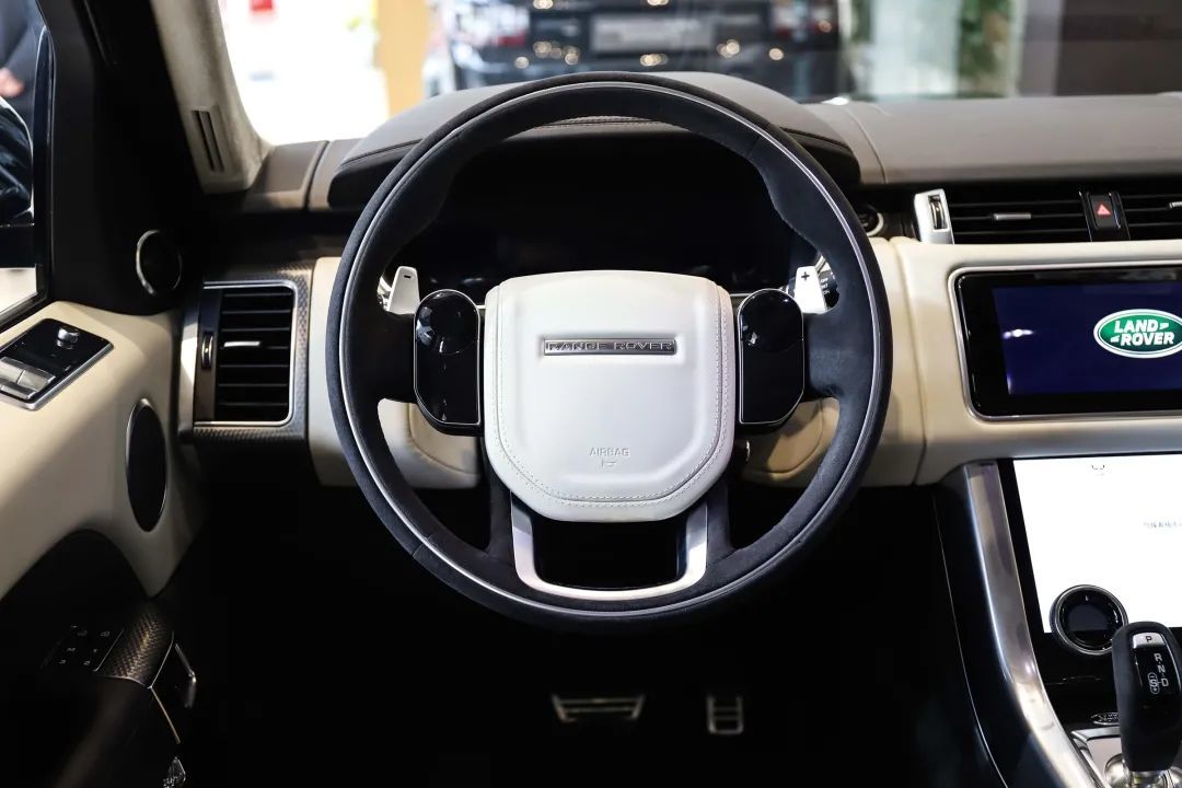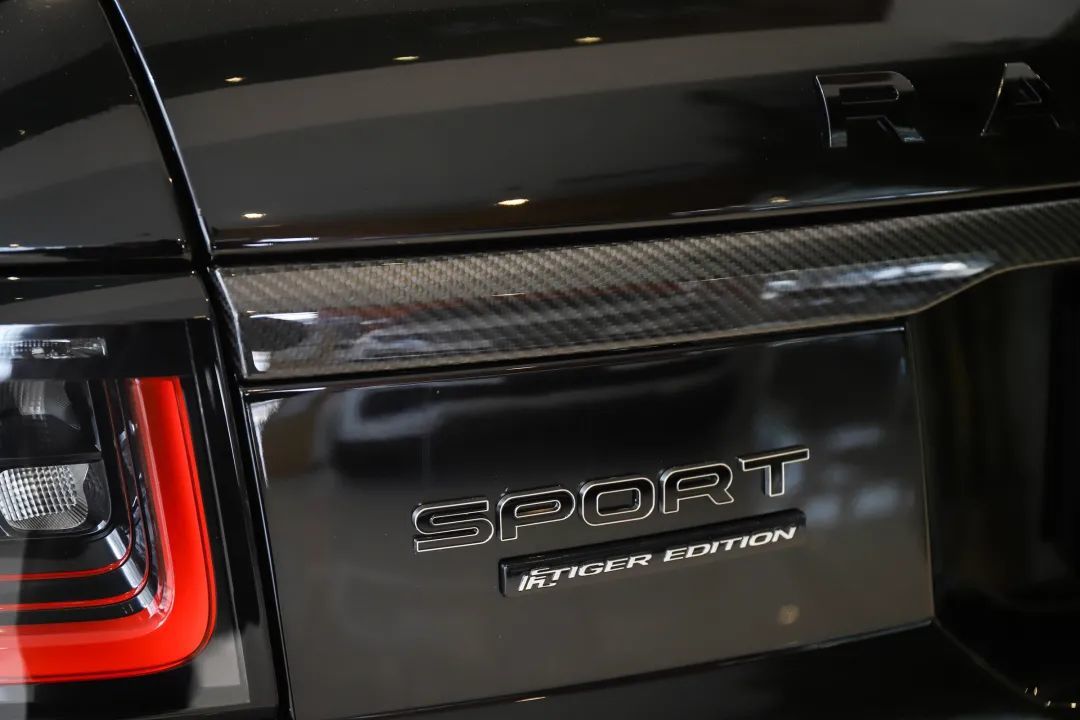 和车展上的展示车型不同,到店的车型为全黑的造型,不仅轮圈、中网、大灯,就连车身上的所有铭牌都采用了熏黑,而且在细节处还采用了碳纤维的材质,以凸显特别的定位。新车基于400PS HST车型打造而来,与普通揽胜运动版最大的区别就是无处不在的虎年徽标。