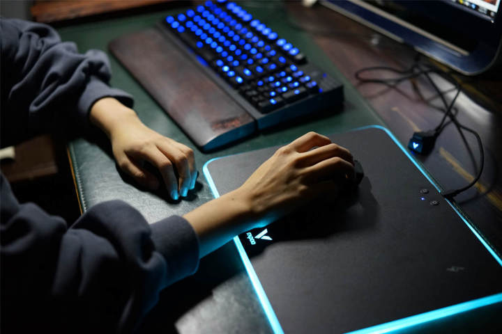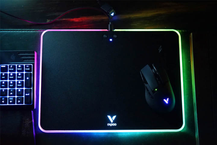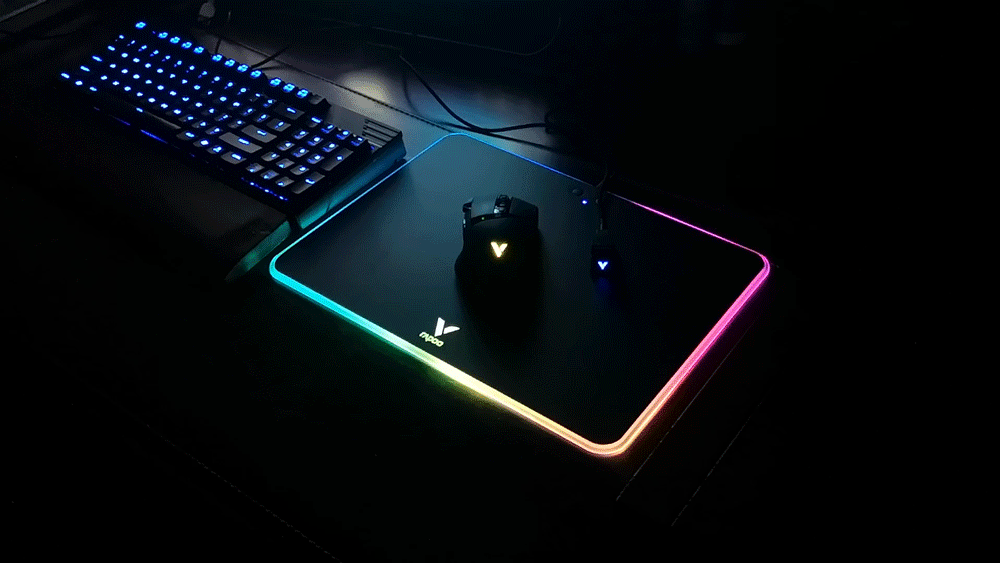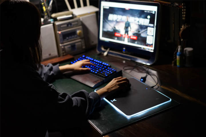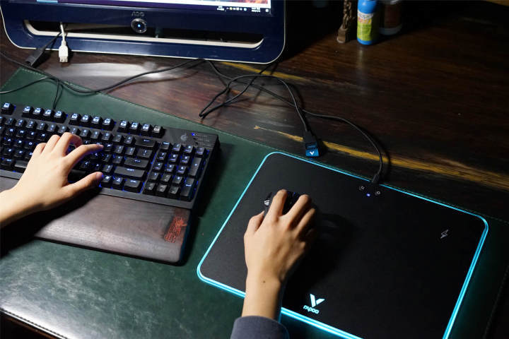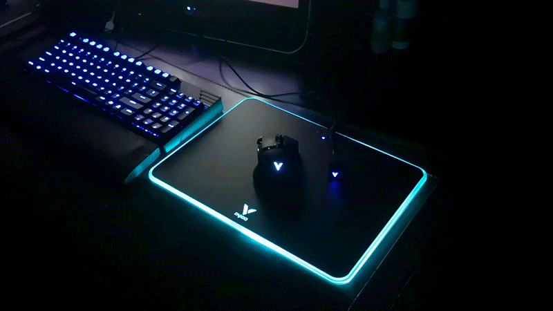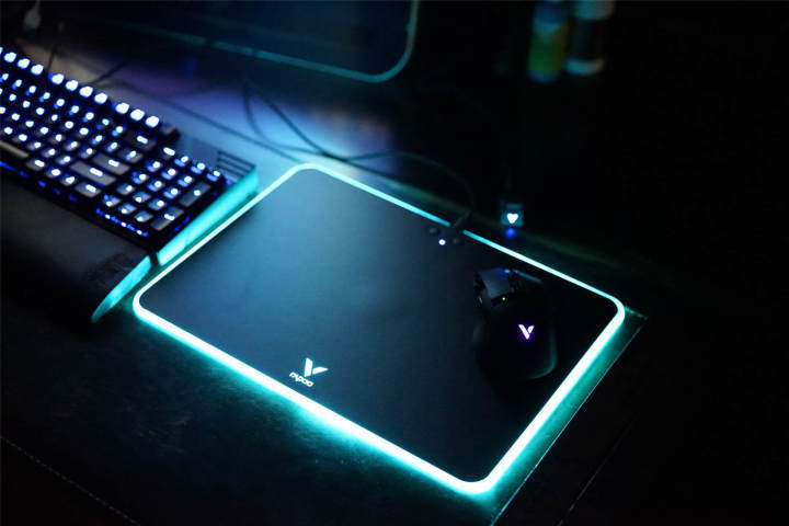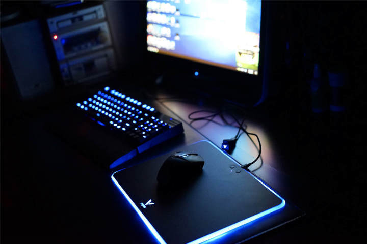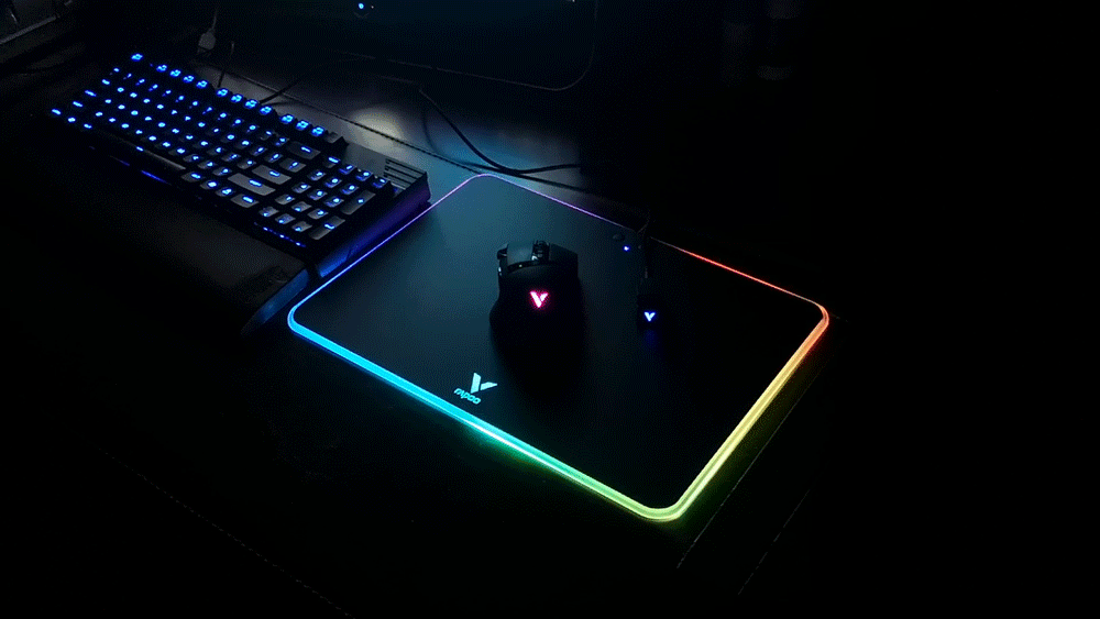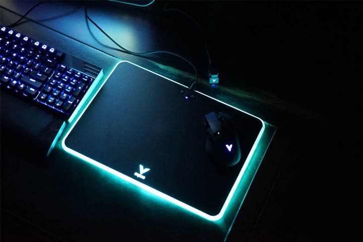 迫不及待的将鼠标垫接入电源、将鼠标接入电脑,炫酷的灯即可点亮,不得不说,V10RGB鼠标垫的TGB灯光还是非常炫酷有吸引力的。
