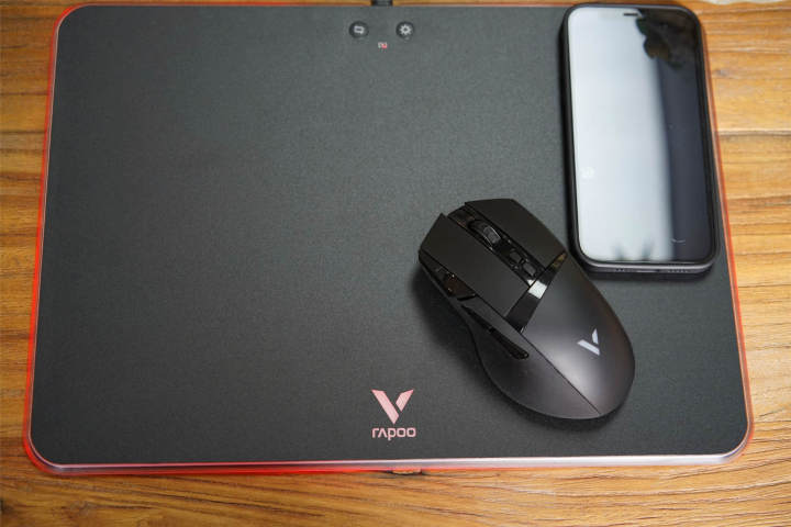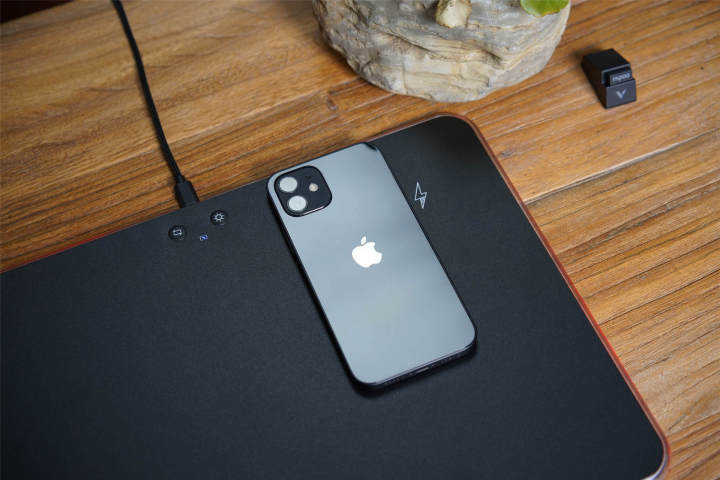 无线充电方面,前面说过V10RGB支持5W/7.5W/10W快速无线充电,自己在用的iPhone12无线充电支持最大功率 15W(需使用苹果 MagSafe ),支持 Qi 无线协议充电,不过第三方只支持到最高 7.5W,因V10RGB没有设计MagSafe,所以最大10W的功率完全可以配适。查看对V10RGB的评论,其无线充电区域太小,在前几次的体验中,确实感觉到无线充电的位置不太好找,不过熟悉后也算可以接受。不过鼠标因为充电区域更小,充电时位置确实不太好找,要反复几次才能成功。