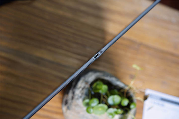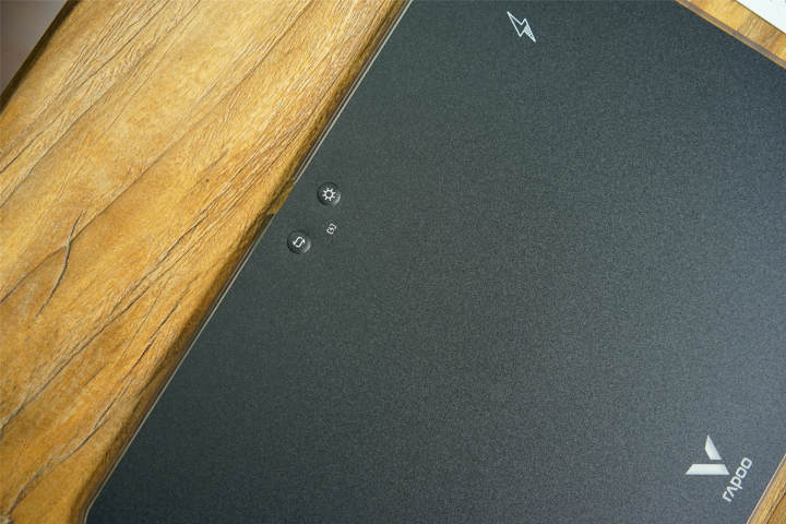 在顶部的一侧是TYPE-C的电源接口,正面的顶部则有两颗实体按键,分别是电源键和模式键,右上角一个充电标识,在这里可以提供快速无线充电。