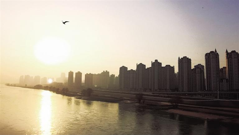 傍晚,太阳的余晖洒在黄河水面上,半面波光粼粼,河面上闪耀着金色的光芒,半面深褐色的水面,倒影着巍峨的白塔。诗人白居易写出“一道残阳铺水中,半江瑟瑟半江红”的诗句,应该正应此时的景象。