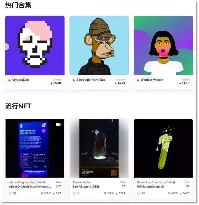 建设于去年9月的欧易NFT交易平台目前已经与MetaX打通,该市场具备了去中心化、0手续费、多平台NFT交易深度聚合等优势,现已支持包含以太坊、OEC、BSC在内的多链资产,欧易NFT市场未来还将支持Solana、Polygon、Flow等更多主流公链。