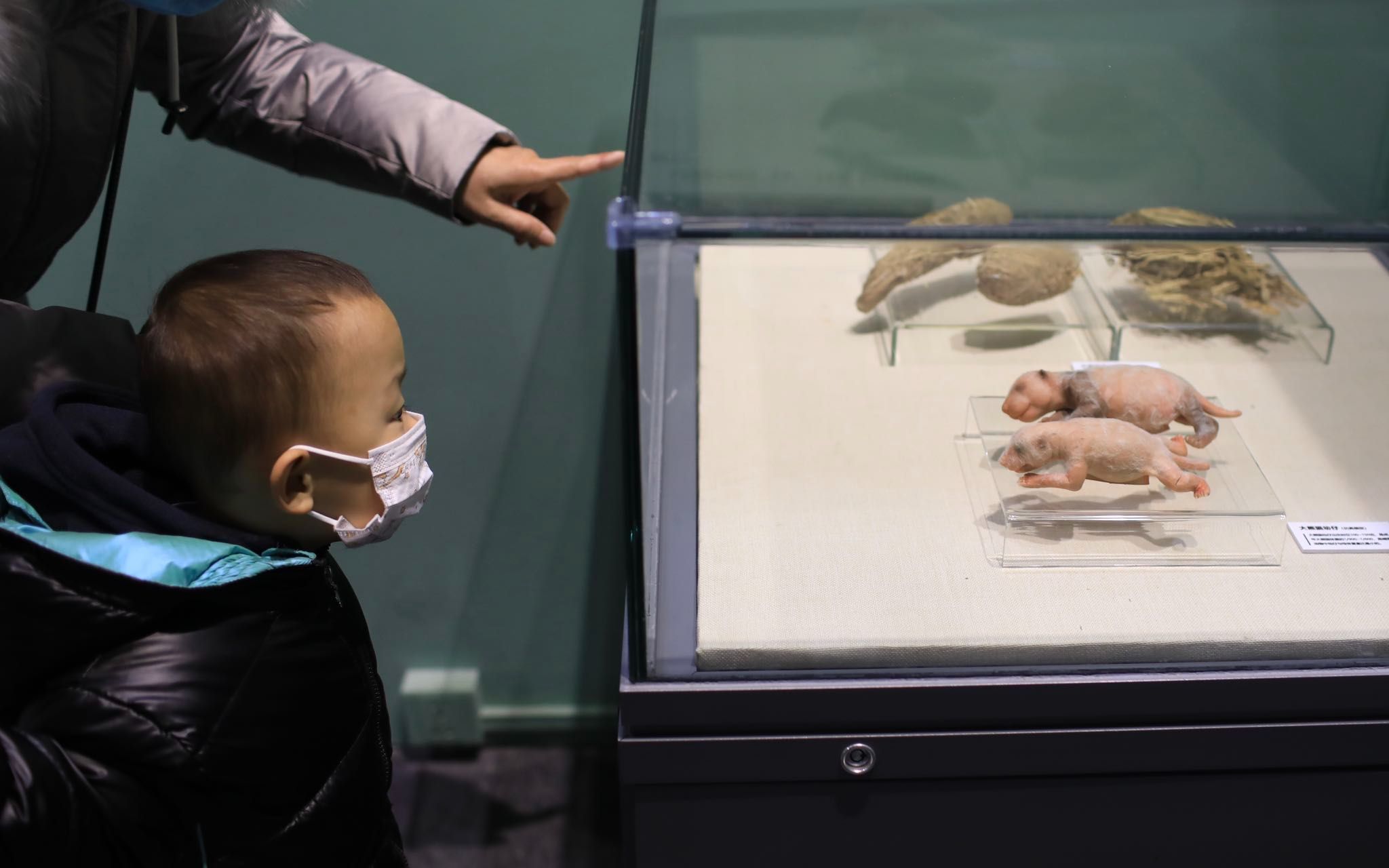 据了解,展览围绕“大熊猫演化”主题策展,共展出大熊猫、小熊猫、元谋始熊猫右上颌骨等近90件珍稀精美的化石标本,并配备7台多媒体设备,全面介绍大熊猫演化与保护等领域的最新科研进展,系统讲述大熊猫与人类同行800万年的演化故事。“像一些骨骼类的展品,也是美术专业或生物学等专业观众近距离观察的好材料。”苗雨雁说。