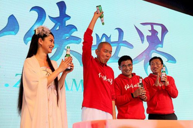 2013年4月9日,巨人网络召开《仙侠世界》网游内测发布会。史玉柱发言之前,先将手里的一瓶酒一口气喝完,剩下最后几滴倒在自己剃得锃光瓦亮的头顶上,随即宣布:“15年来两次创业,今天决定彻底退出江湖,落得一身轻,我不再担任任何实职,要把舞台留给年轻人,大家从此忘掉史玉柱这厮吧!”