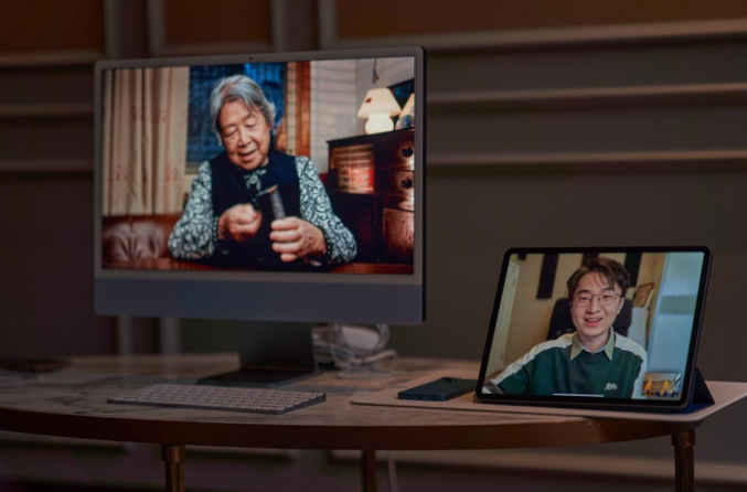 比如FaceTime让我随时见到爷爷奶奶,在视频通话中交流感情。奶奶会在厨房做饭时打开iPad 给我拨打 FaceTime 教我制作西安的传统面点,“人物居中”功能还完美捕捉到了闯入镜头中的爷爷,他俩的互动显得温馨又可爱。