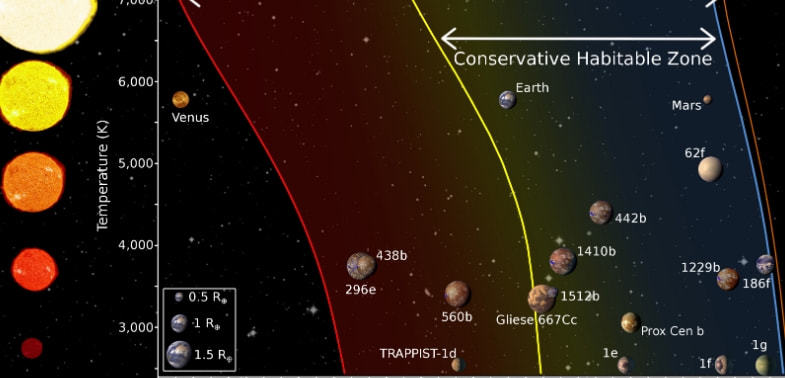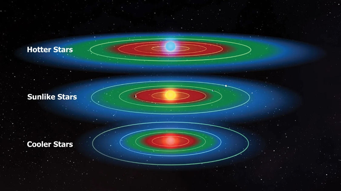 我们用“宜居带”来形容宇宙中更可能孕育生命的区域。通常情况下,这个词常用于表述跟行星有关的内容,以及行星到它所环绕的恒星之间的距离。不同的恒星有不同的宜居带。“宜居带(Goldilocks zone)”这一词来自一个儿童故事,有一个性格蛮横的金发女孩叫Goldilocks(意思为“刚刚好”),她闯进小熊一家的住处,吃他们的粥还要睡在他们的床上,小女孩只喜欢一切刚刚好的东西,所以把所有的粥都尝了一遍、把所有的床都躺了一遍,直到找到她认为最刚刚好的那一个。