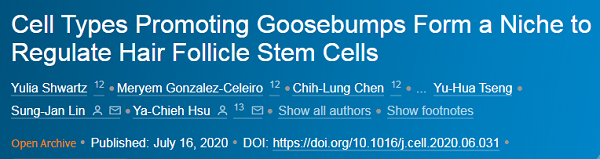 [2]Shwartz Y,Gonzalez-Celeiro M,Chen C L,et al. Cell Types Promoting Goosebumps Form a Niche to Regulate Hair Follicle Stem Cells[J].Cell,2020,182(3).