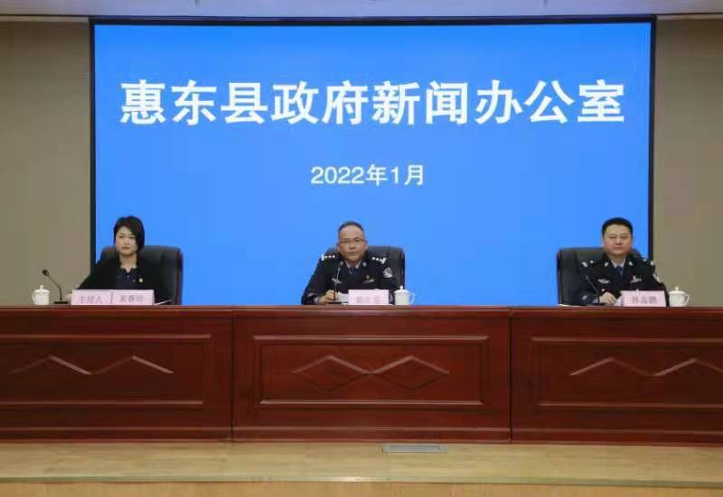 1月17日,惠东县政府新闻办公室组织县公安局召开2022年春运道路交通安保新闻发布会,会议通报了2022年春运道路交通安全管理工作部署情况,并结合惠东公安春运安保“十项措施”,就如何全力做好全县春运期间道路交通安全畅顺各项工作回答记者提问。