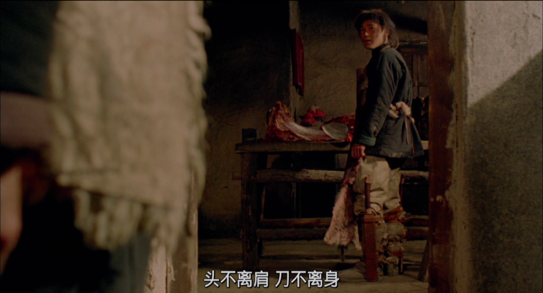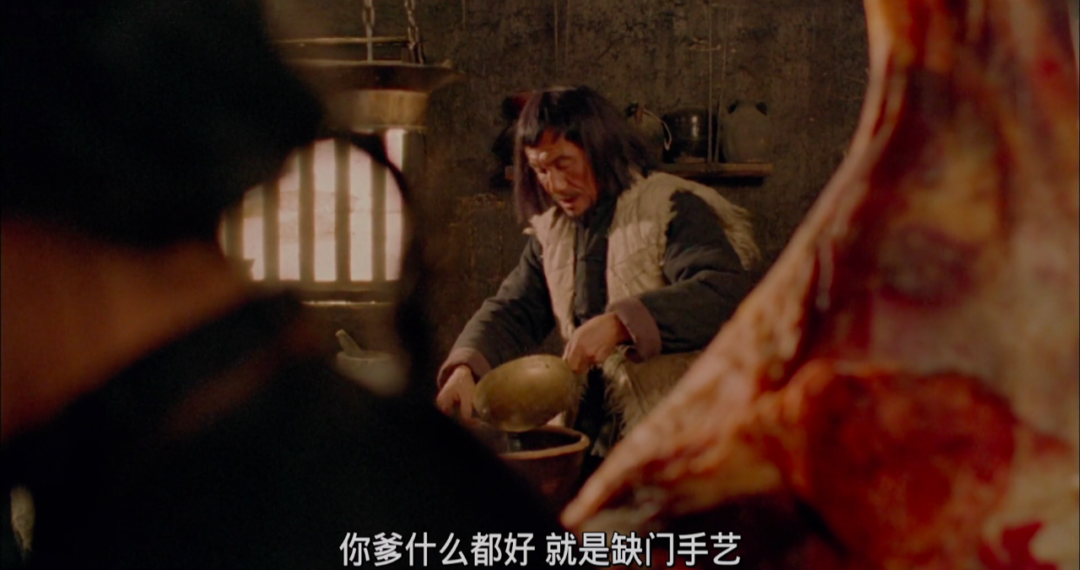 第一个是瘸子丈人,这个曾经的刀客,在腿瘸后退隐江湖,安分地开了家肉店讨生活。
