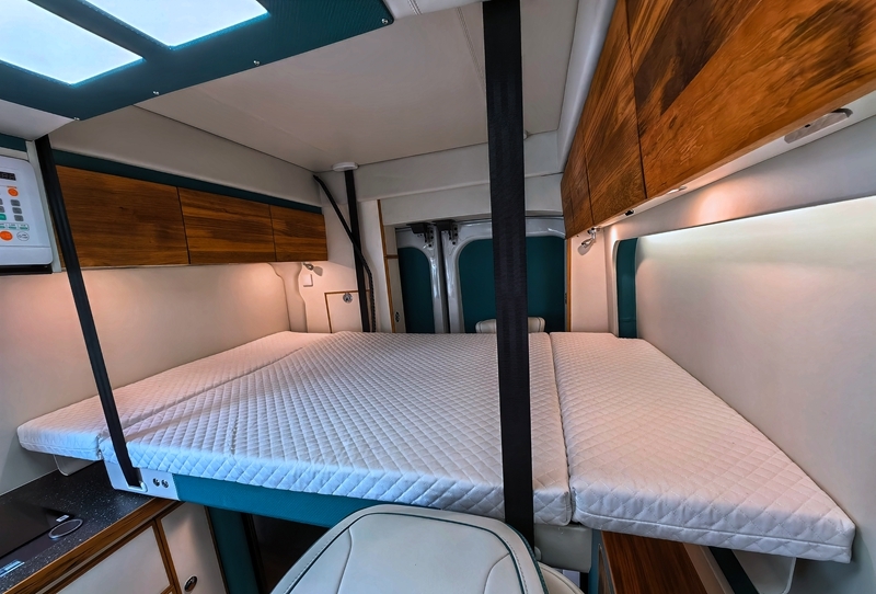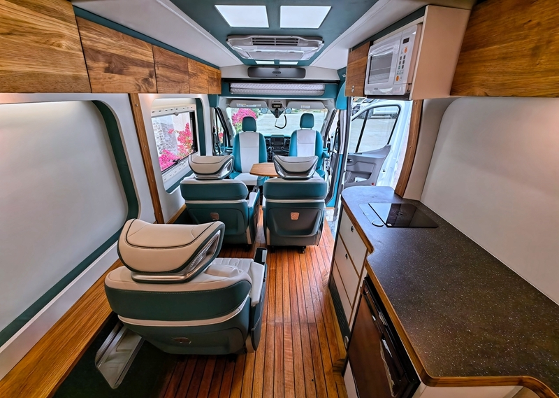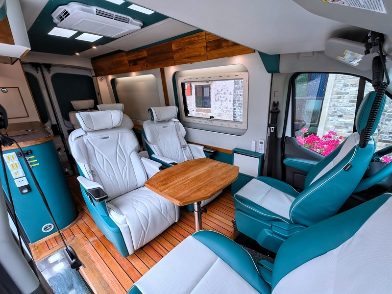 越野房车内部,客厅、厨房、卫浴间、睡眠区域也都安排的妥妥当当,1.8*1.2米的升降大床,可以供1-3人使用,厨房中智能平板多功能微波炉、小米智能电磁炉以及多美达50L进口压缩机冰箱等设备,带我们进入现代智能厨房生活之中。