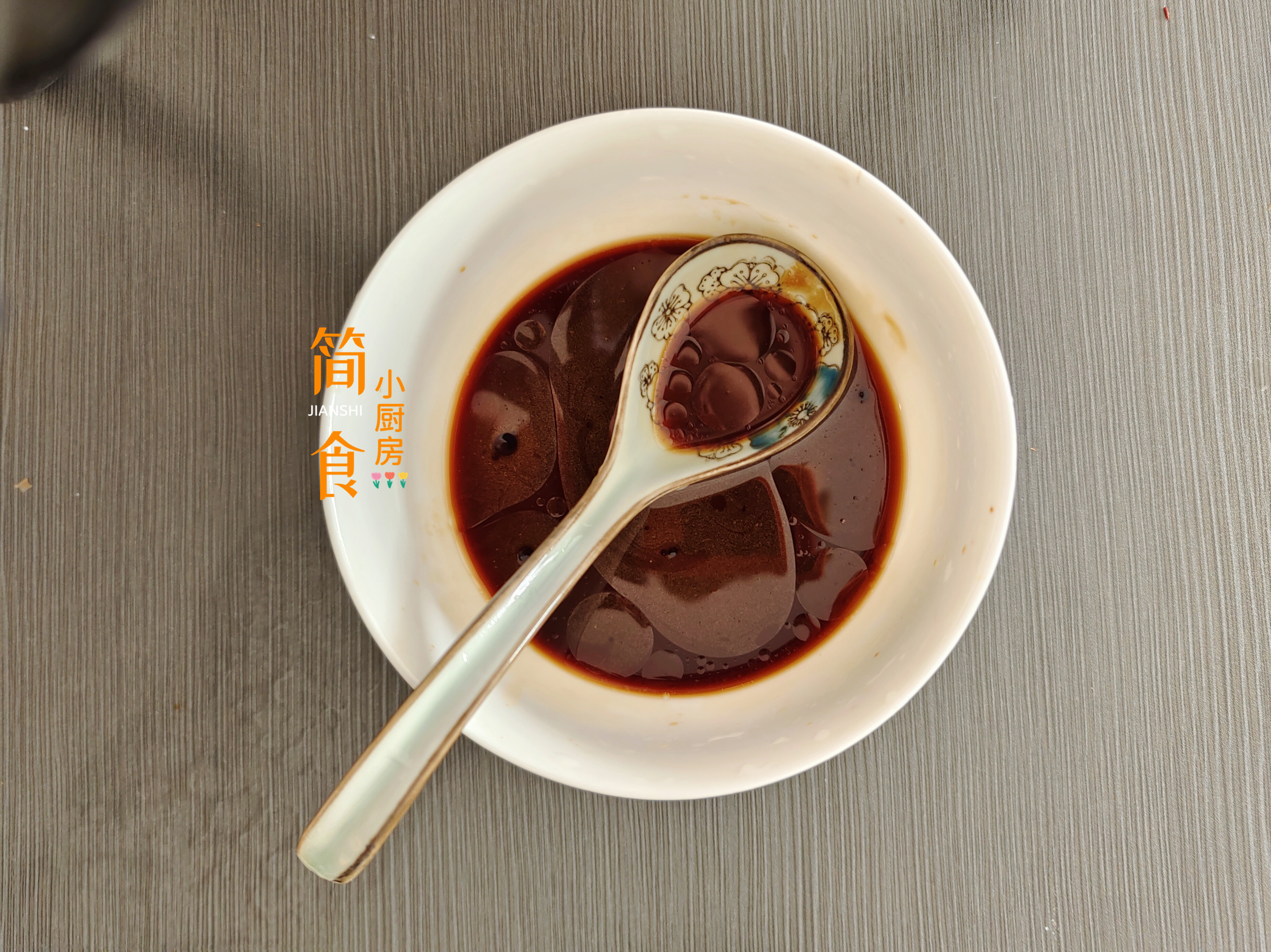 2、灵魂料汁:半勺盐,半勺白糖,一勺料酒,一勺老抽,一勺蚝油,两勺生抽,少许香油,适量水淀粉,将上述调料依次放入碗中,搅拌均匀,备用。
