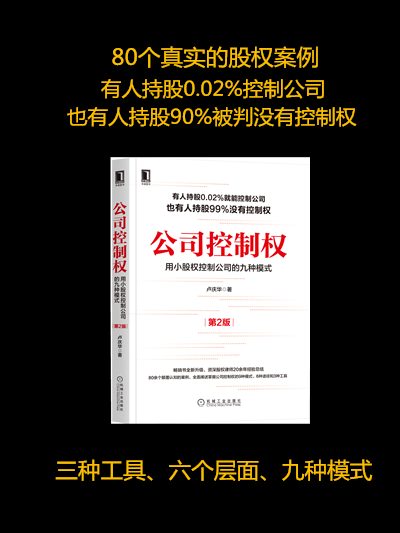 在我写的《公司控制权》书里有多个法院判决的案例,有人持股70%、90%、99%都被判没有控制权。