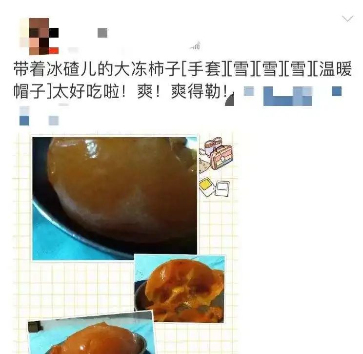 “柿子要冻成邦邦硬,一边吃一边化,最后化透了再吃凉丝丝的柿子瓣,那就是冬天的味道。”