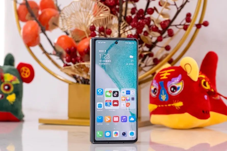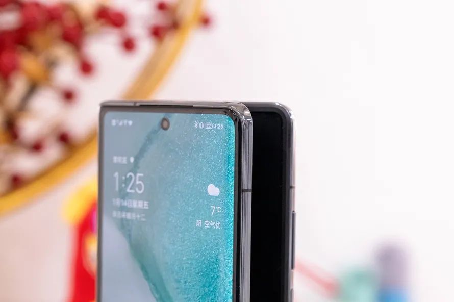 值得一提的是,外屏是微曲面屏,并不是直屏,对于本就不薄的折叠手机来说,微曲的外屏与背面无疑会提升握持手感,屏幕使用纳米微晶玻璃覆盖,也带来了不错的抗摔性,赵明发布会上敢直接摔手机便是不错的证明。