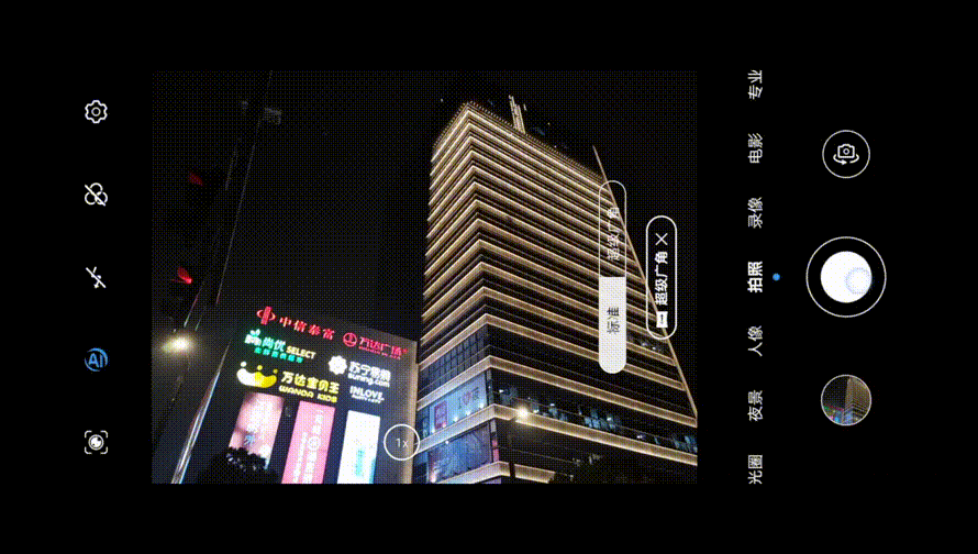 夜景同样如此,从荣耀Magic V的相机取景界面来看,可能在高光部分已经过曝,暗处细节也显示的不太清楚,但是在拍摄完成之后,经历AI优化处理,你会发现过曝以及照片噪点也得到了很好的控制,但是色彩的白平衡可能并不是那么准确。