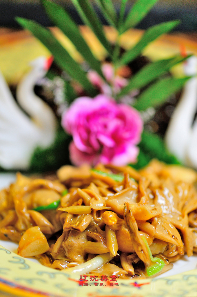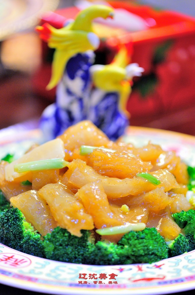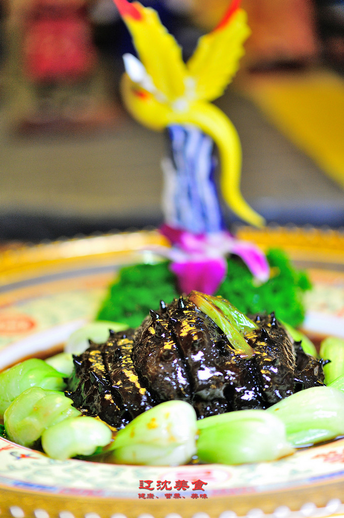 葱烧辽参,辽参是“海八珍”之首,这道菜是辽菜代表作,烹饪起来不容易,葱烧海参最难做的是入味,因为海参不容易拢芡,出品之后海参香滑,葱段香浓,最后吃完之后,您会发现盘内无多余的汤汁。