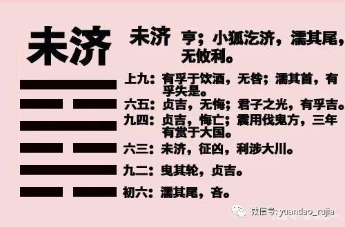 由此小乾坤,遂开人间夫妇之先河,故咸为夫妻、家庭、社会之开端,遂有“有男女然后有夫妇,有夫妇然后有父子,有父子然后有君臣”之言。下篇终结于既济、未济,其象同样为日月(既济、未济皆含日月之象),同上篇坎离相对应。