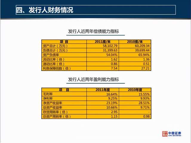 2012年11月,在虚假资料的加持下,作为债券承销商的中信证券,在其《2012年宿迁市致富皮业有限公司中小企业私募债券路演推荐材料》中显示,致富皮业公司还是具有一定的债务偿还能力的。