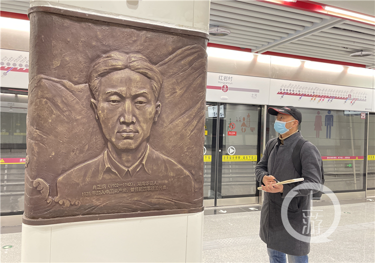 ▲轨道9号线红岩村站的站台层,在24根立柱的浮雕上,雕刻着的是24位红岩英烈的头像以及介绍