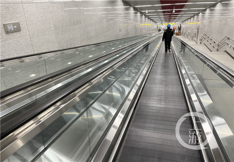▲轨道9号线一期工程红岩村站2号通道的超长扶梯