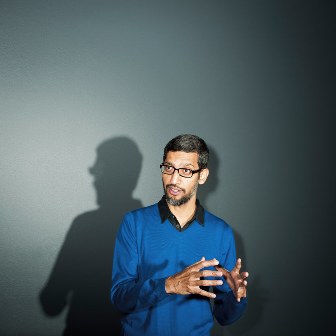 上图:Sundar Pichai,谷歌的首席执行官,在他加利福尼亚州山景城的办公室外。
