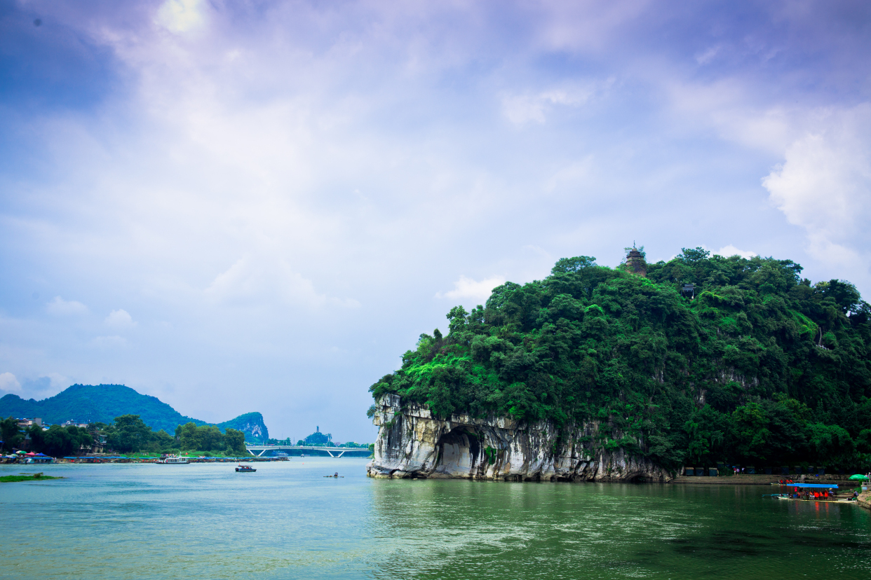 象鼻山位于漓江与桃花江的汇流处,每天早上,桂林市人民总会迈步入象鼻山进行晨练,它就像大自然的鬼斧神工,以山为身,以水为灵,被雕琢为一只漓江饮水的大象。