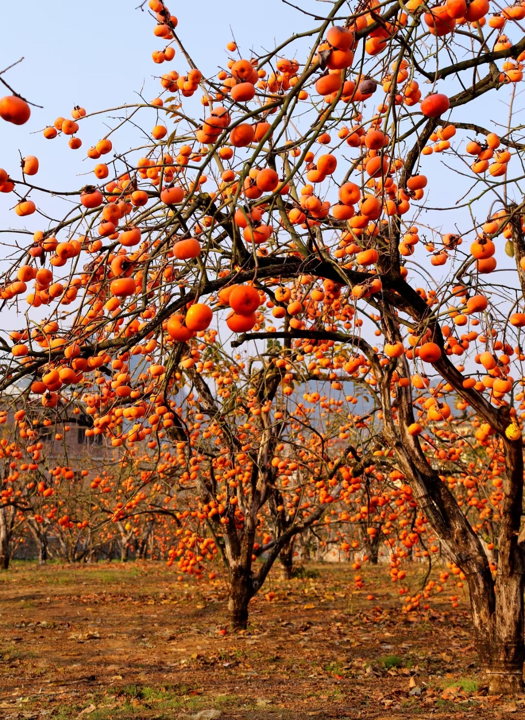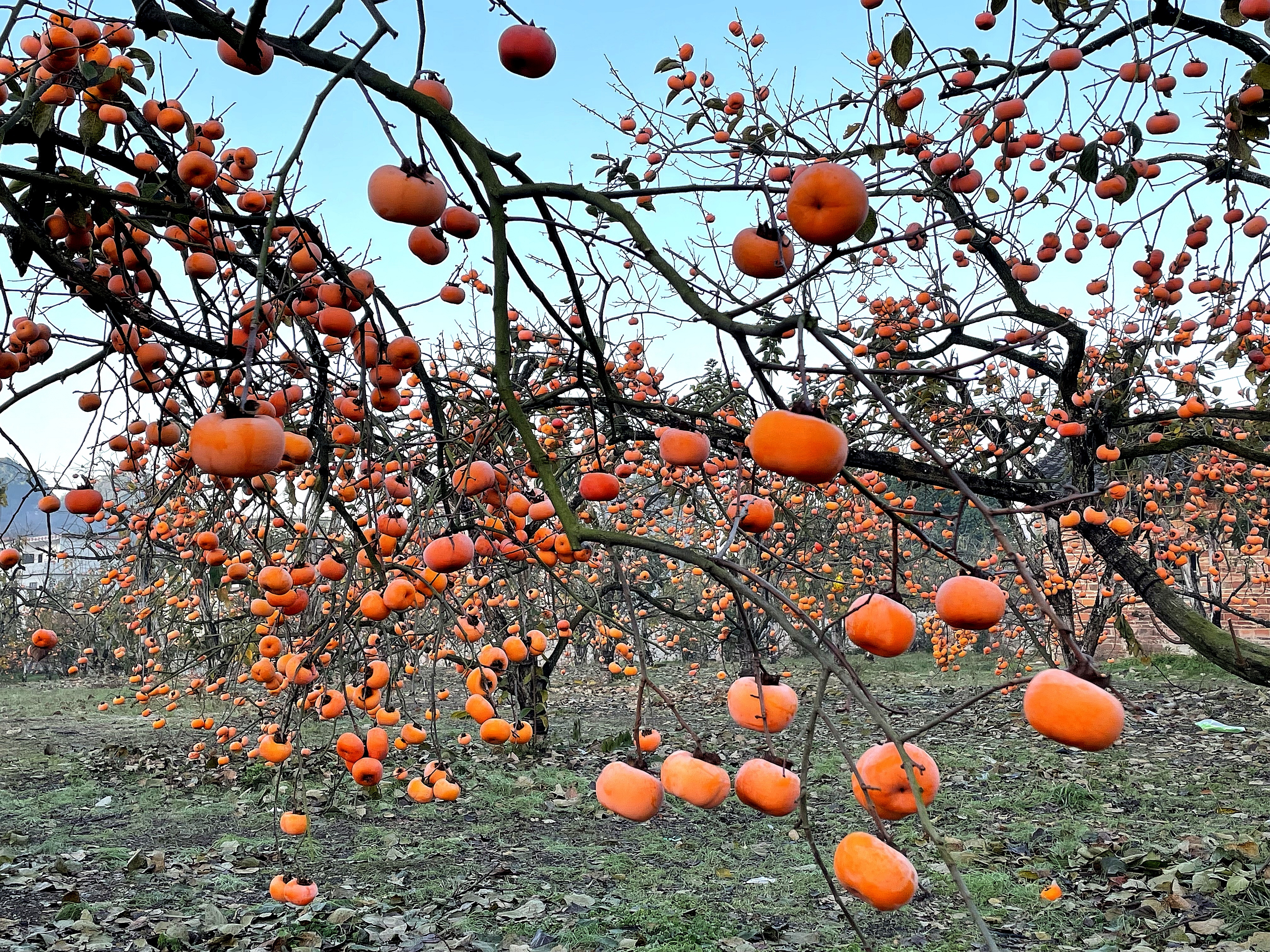 红岩景区种植有上万亩月柿,每当月柿成熟的季节,这里就成了红色的海洋。
