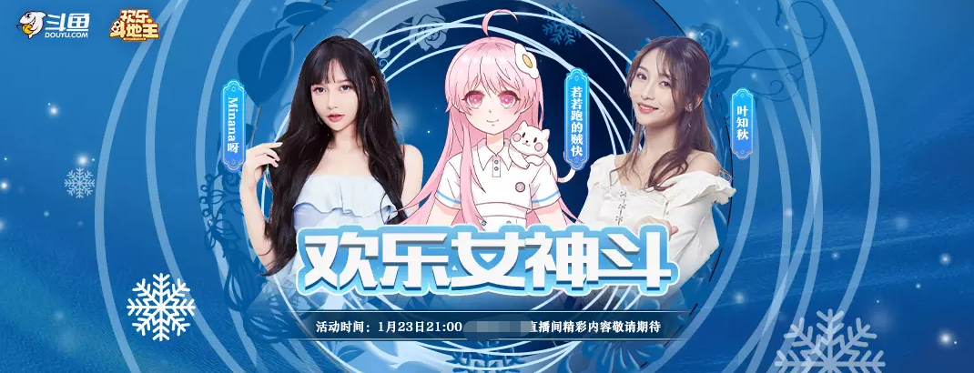 还有一周左右的时间新年钟声便将敲响,这段时间大家都是在热切与激动中盼望着新年。值得一提的是来到年关各大直播平台相继推出不少新颖节目,这不斗鱼直播于1月23日21点便要搞一个直播活动。“女神欢乐斗”直播活动之所以备受大家期待,其原因也很简单,那便是这场直播将有三位嘉宾参与,分别是米娜、叶知秋和若若,看到这三人,相信大家明天都会去看“女神欢乐斗”的吧!