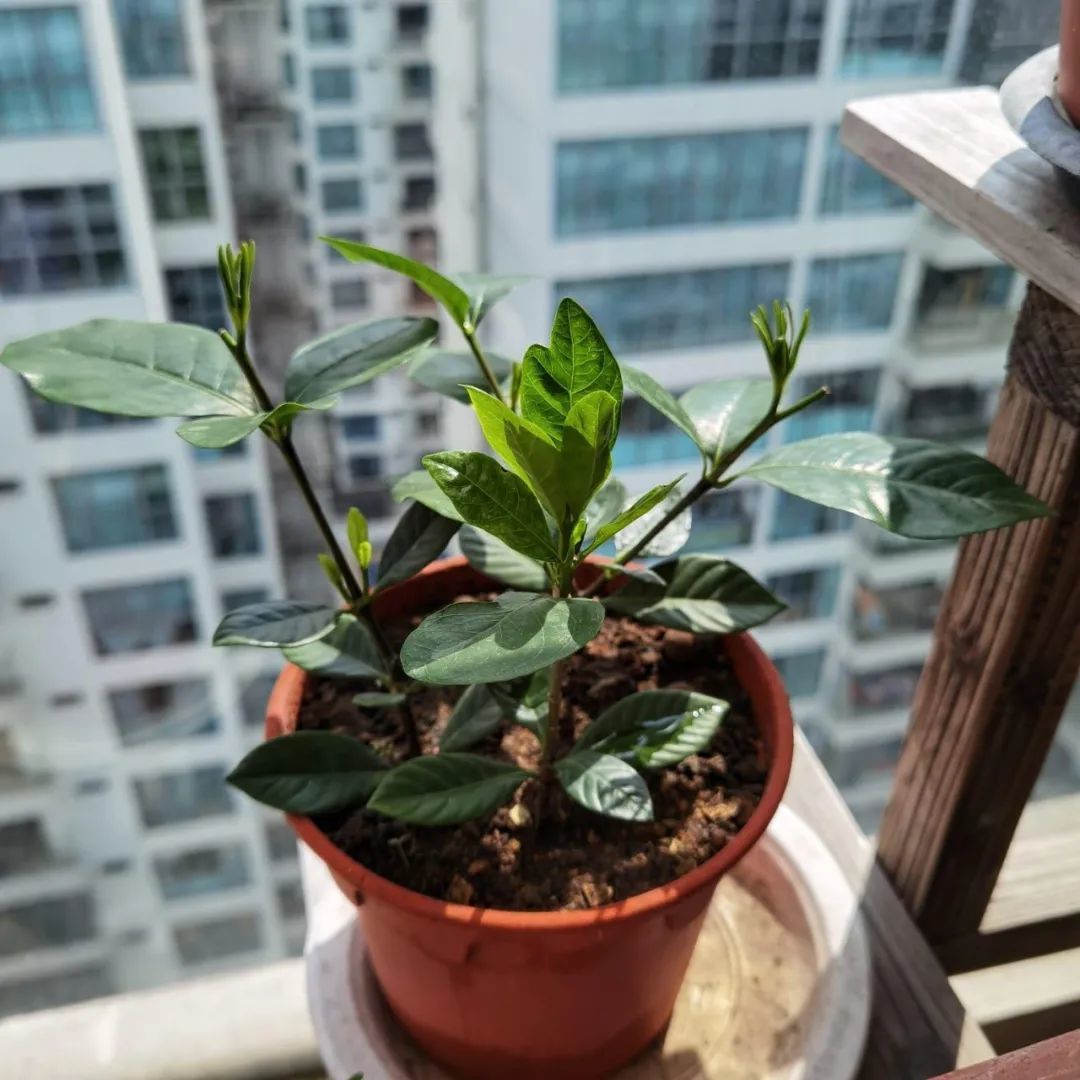 在前一两周,主要都是为了缓盆,基本就是不动根系。栀子花就在原来的花盆养着,先浇透水,过了两三天之后再逐渐增加光照,注意维持环境良好的通风,不要养在密闭的空间,如果家里是密闭式的阳台或窗台,那建议还是不要养盆栽栀子花了。