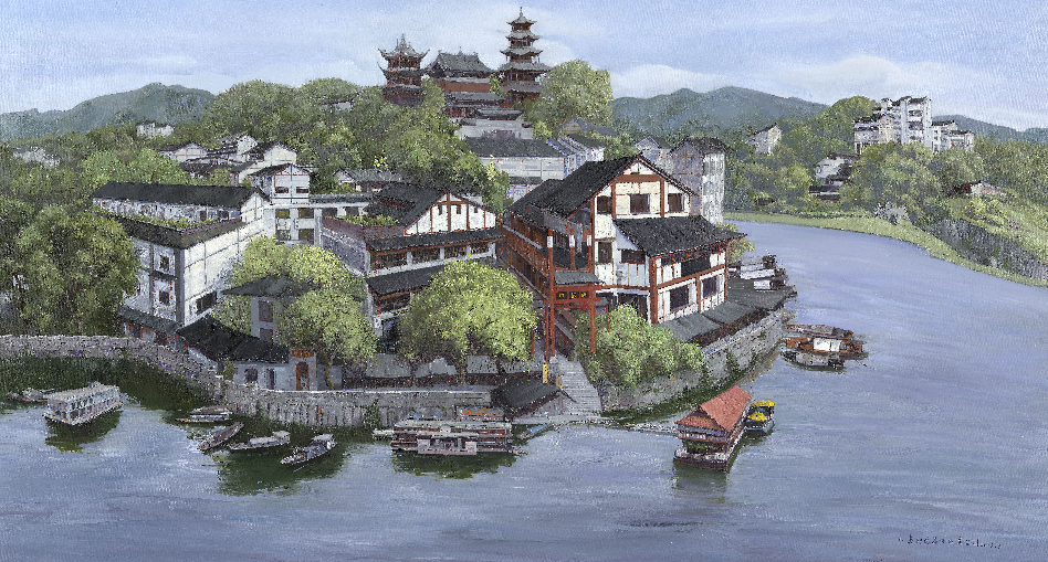 一花独放不是春,万紫千红春满园。内容的丰富性来源与于题材的广泛性,而形式的新颖则来源与画家的表现风格与独特呈现。《巴山渝水入画图》所精选的作品,博采三峡画派的众家之长,体现了“百家争鸣、百花齐放”。中国古代思想家孟子说过:“夫物之不齐,物之情也。”不同文明同有优劣之分,只有特色之别。习近平总书记曾说:“海纳百川,有容乃大。人类创造的各种文明是劳动和智慧的结晶。每一种文明都是独特的。在文明问题上,生搬硬套、削足适履不仅是不可能的,而且是十分有害的。一切文明成果都值得尊重,一切文明成果都要珍惜。交流互鉴是文明发展的本质要求。文明因交流而多彩,文明因互鉴而丰富。”重庆机场集团和四川美术学院编辑的《巴山渝水入画图》采取不同形式来立体展示“山水重庆的自然风光和人文风情”,就是从不同侧面向全世界生动展示重庆的自然遗产、文化遗产和特色鲜明的人文风情,就是在通过个性化的人文名片打造,春风化雨地、润物细无声地推介重庆,这实质上就是一种文明的普及,一种文明的接力传递,更是一种文明的交流与细水常流的互鉴,这样的形式值得点赞。因为这样的形式,高度浓缩地把重庆的山、重庆的人,重庆的物和发生的故事,用色彩、用眼睛、用体验的方式向全世界讲述了重庆已经发生、正在发生的故事。